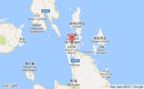 | 港口介绍 | [苏里高港口位置如地图所示。, 苏里高(surigao)地理经度:125.5137674,纬度:9.7571312。东南亚线航线主要港口之一, 苏里高是菲律宾港市。北苏里高省首府。位于棉兰老岛东北端,临苏里高海峡。沿岸航运频繁的港口。公路交通中心。附近有丰富的铁、金矿、椰子集散地。捕鱼业甚盛,近期的旅游业发展也十分旺盛,多处景点被收录在微驴儿,携程,和去哪儿等在线旅游网站当中。, 马尼拉到苏里高有渡轮到达:, 马尼拉→宿务→苏里高 航程: 35个小时左右, 苏里高是菲律宾重要的海运港口,更多菲律宾港口信息及新闻请参考下面列表。] 苏里高港口位置如地图所示 |